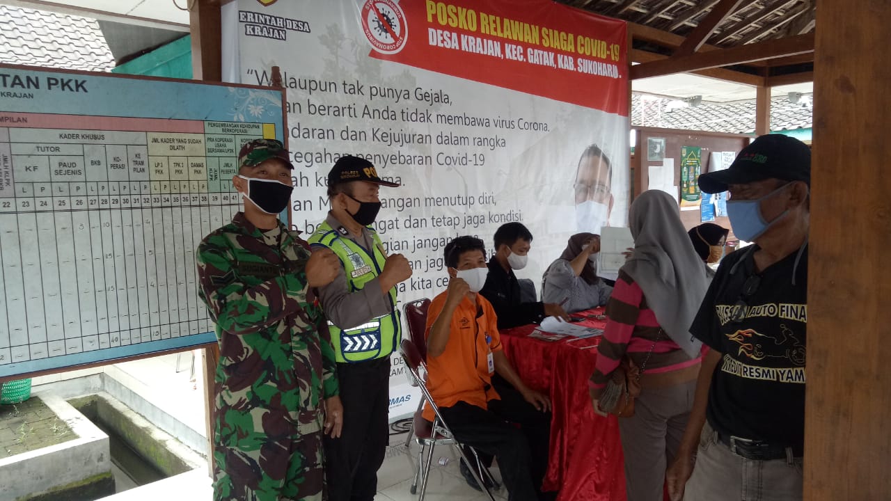 Tampak hadir Bupati Sukoharjo turun langsung mengecek jalannya pembagian BST tersebut di desa Krajan, didampingi Camat, Danramil, Kapolsek, Kades dan para perangkat desa. Selama kegiatan berjalan dengan aman dan lancar tampak 4 orang petugas Kantor Pos melayani para warga. Tampak turut mengamankan kegiatan Babinsa Sertu Sugianto dan Bhabinkamtibmas Aiptu Subarno.