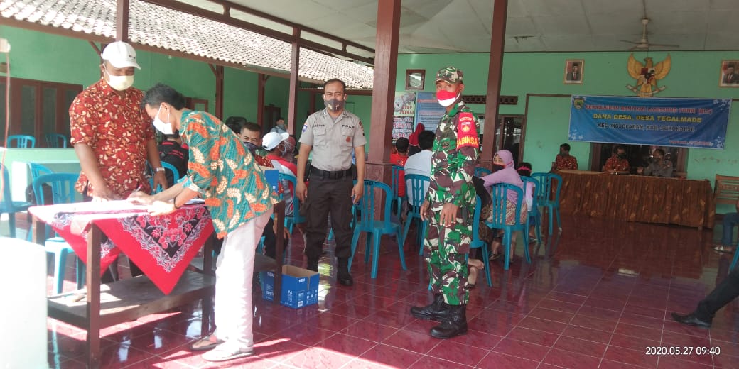 Bertempat di Balaidesa Tegalmade, Grogol, Sukoharjo Danramil 10 Mojolaban Kapten Inf Mustamim tampak melaksanakan monitoring kegiatan penyaluran BLT tersebut bersama YC Sriyana S.SoS M.SI ( Kapala BPMD kab Sukoharjo ), Ipda Aref ( Perwakilan dari polsek Mojolaban ), Bpk Bop Sadino ( Perwakilan dr Kec Mojolaban ), Bpk Panudi SOS ( P3MD Kab Sukoharjo ), Bpk Banu ( P3MD Kec Mojolaban ),Bpk Sambudi ( Ketua BPD Ds Tegalmade ).