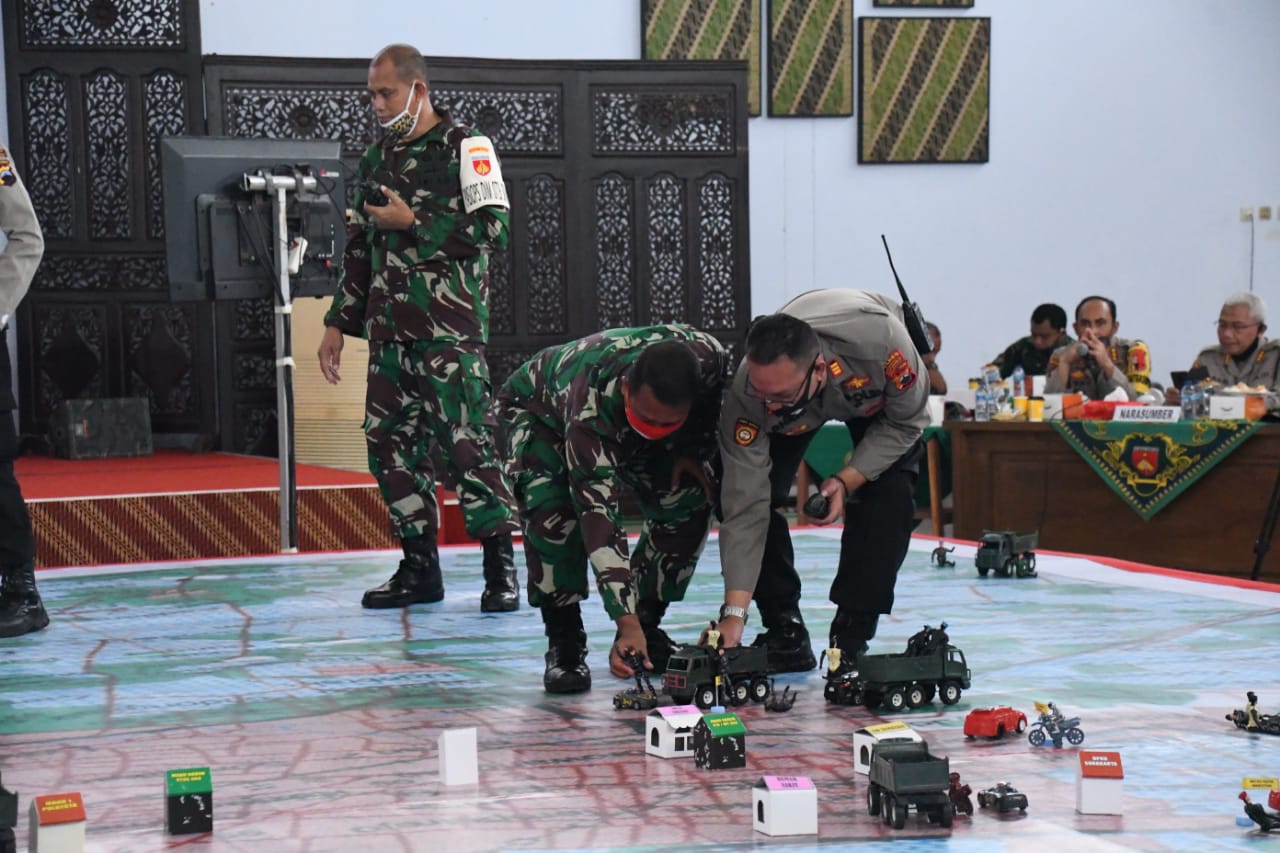 Surakarta (03/06/20) Pangdam IV/Diponegoro, Mayjen TNI Mochamad Effendi, S.E., M.M. Selasa (02/06/20) membuka simulasi Tactical Floor Game (TFG) dalam rangka Sispamkota untuk menghadapi situasi kontijensi (Konflik sosial Dampak Wabah Covid 19) yang dilaksanakan di Gedung Warastratama Surakarta.