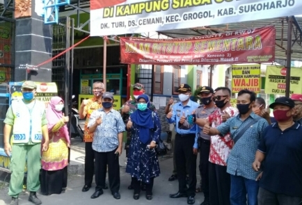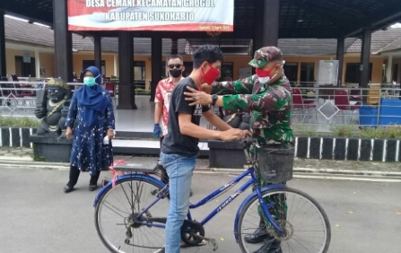 Sukoharjo (10/06/20) Bertempat di Balai Desa Cemani, anggota Koramil 09 Grogol bersama dengan para anggota dari dinas terkait di Kecamatan Grogol mengadakan acara edukasi dan operasi masker dilanjutkan peninjauan kampung siaga Covid dan Rumah Isolasi di Dk Turi Rt 4/ 7 Desa Cemani oleh Muspika kec Grogol, Kabupaten Sukoharjo.(09/06)