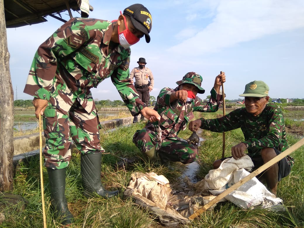 Sukoharjo (15/06/20) Anggota Loramil 11 Polokarto kembali melaksanakan gropyokan tikus bersama para petani desa Pranan dihamparan sawah Desa Pranan kecamatan Polokarto, Sukoharjo.