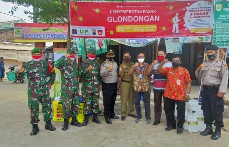 Hari itu kegiatan difokuskan di beberapa titik lokasi di pasar Glodongan Kec. Polokartol, Kab. Sukoharjo. “Pasar menjadi tempat yang sangat rawan sebagai lokasi penyebaran Covid-19 karena pasar merupakan lokasi berkerumunnya orang,” ujar Kapten Inf Suroso Danramil 11 Polokarto.