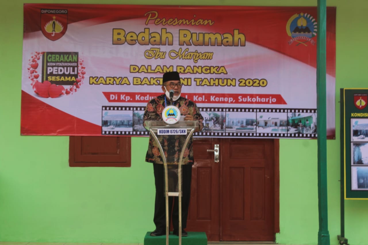 Akhirnya, dengan mengucap syukur kehadirat Tuhan Yang Maha Kuasa, atas nama Danrem 074/Warastratama pada hari Jum’at (19/06) Pukul 09.38 WIB, Pembangunan Bedah Rumah lbu Mariyam dalam rangka Karya Bakti TNI Tahun 2020 secara resmi saya nyatakan telah selesai dilaksanakan.