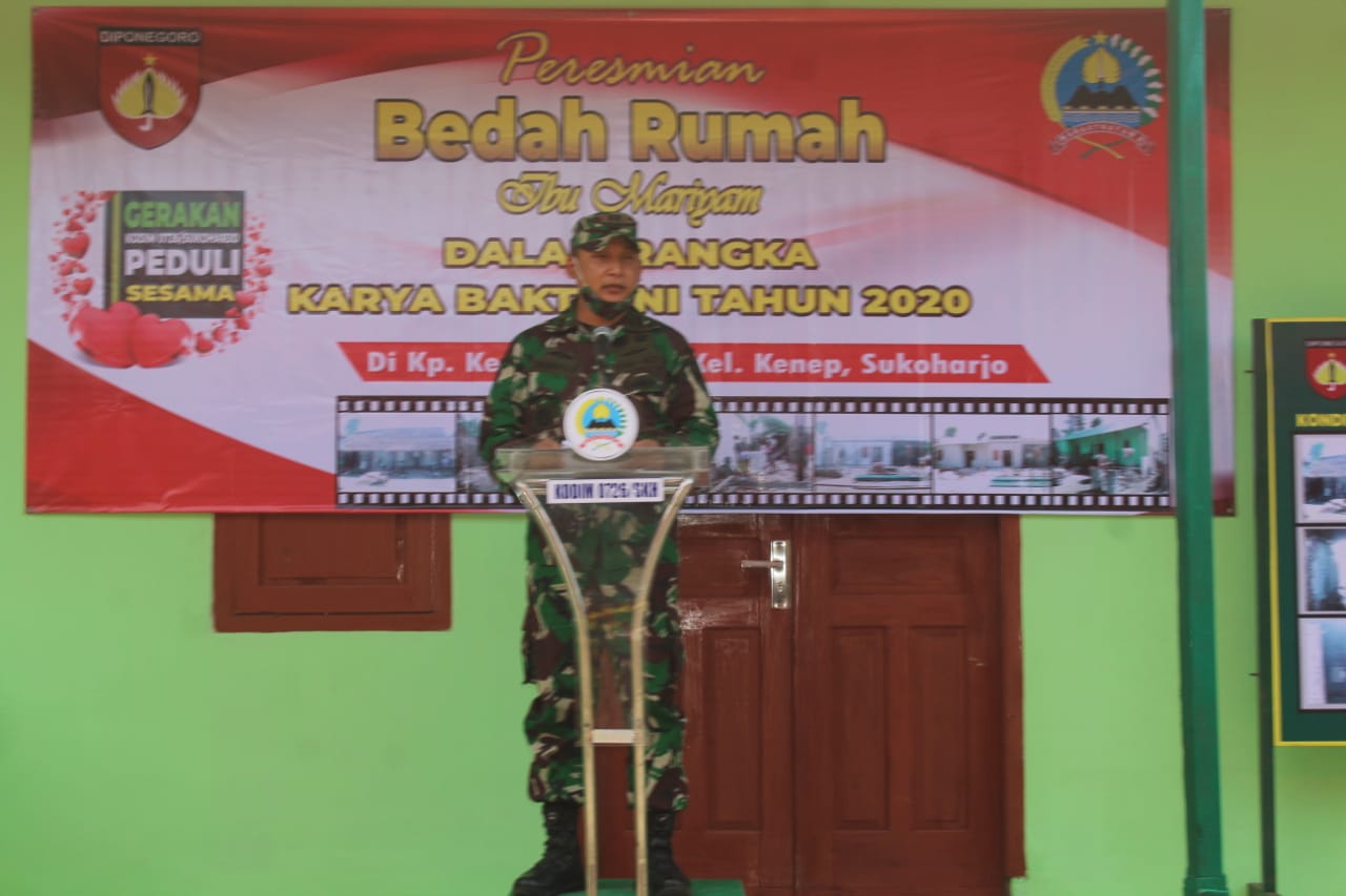 Kepada seluruh masyarakat Dk. Kedunggudel, Kel. Kenep Dandim meminta untuk dapat ikut menjaga Keluarga lbu Mariyam dan memelihara hasil pekerjaan bedah rumah ini dikaitkan segala keterbatasan dari latar belakang keluarga ini.