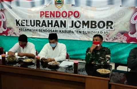 Sukoharjo (19/06/20) Sejumlah warga/pejabat RT/RW berkumpul di Balai Kelurahan Jombor mengikuti pengarahan dan sosialisasi New Normal dari Muspika Kecamatan Bendosari kepada LPM, ketua RT dan ketua RW se Kelurahan Jombor. (18/06)