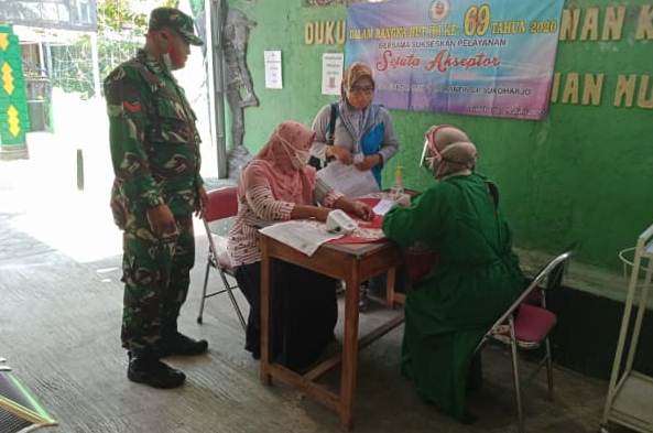 Tenaga medis dipimpin dr. Toufiq Nur (Dokter Poskes Kodim 0726/Sukoharjo) bersama Pelda Santosa (Ka Klinik Poskes Kodim 0726/Sukoharjo), Pelda Gunawan (Anggota Klinik Poskes Kodim 0726/Sukoharjo).