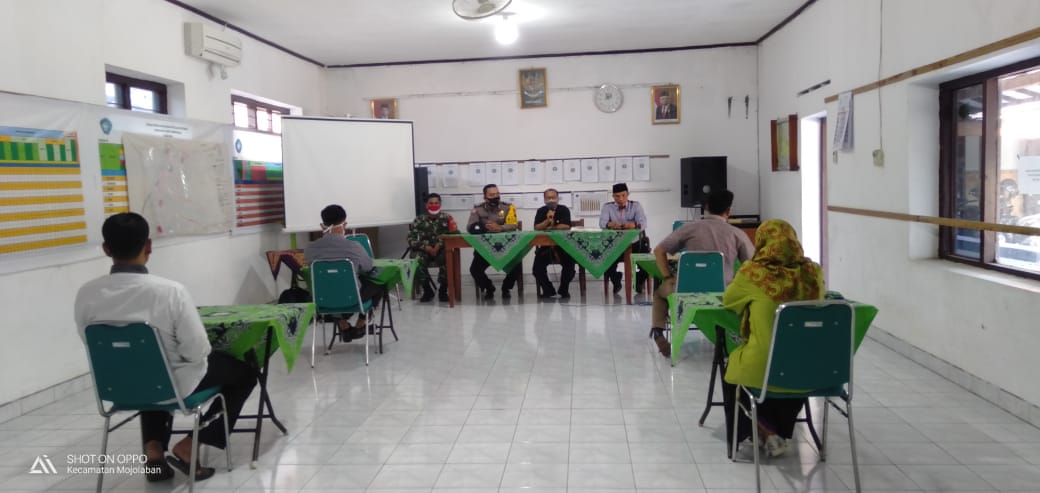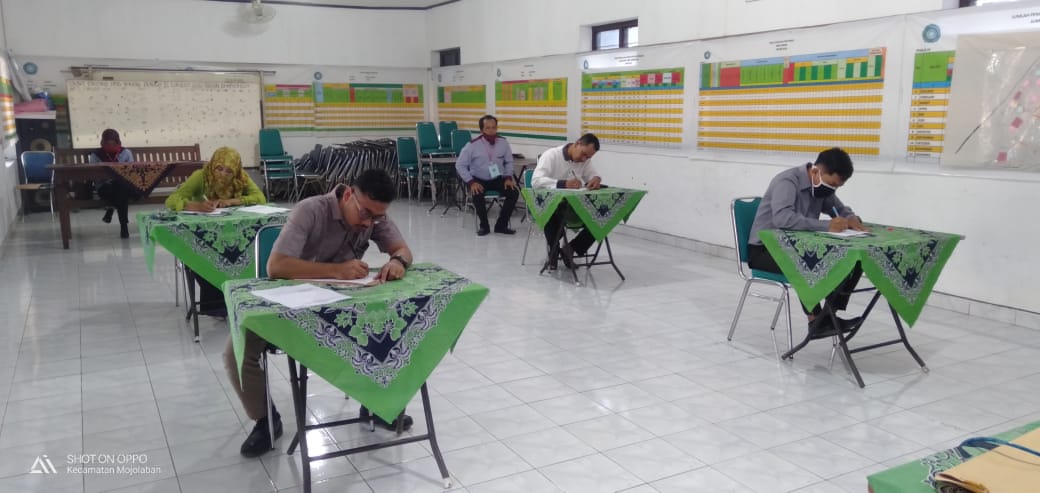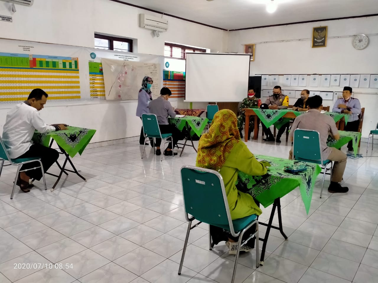 Sukoharjo (11/07/20) Sertu Alex babinsa Desa laban bersama Kasi pemerintahan kecamatan Mojolaban Bp. Hernowo Subakdo dan Panitia pemilihan perangkat desa Laban melaksanakan kegiatan Pengamanan dan pengawasan test tertulis di kantor Desa laban, Mojolaban, Sukoharjo.