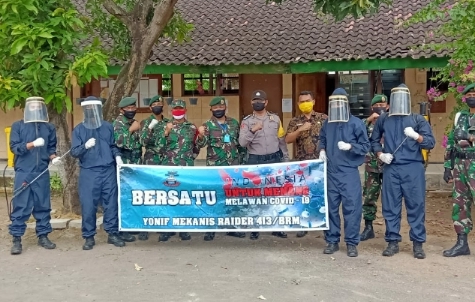 Penyemprotan disinfektan dan pembagian masker dimulai sejal pukul 08.00 s.d 13.00 wib. Penyemprotan menyasar fasilitas umum masyarakat termasuk bangunan Sekolah Dasar di desa tersebut. Dalam kegiatan ini prajurit berperan penting, karena peranan prajurit adalah menjaga keamanan dan mendekatkan diri kepada masyarakat dan menjadi pelindung untuk masyarakat dengan cara pembinaan teritorial (Binter).