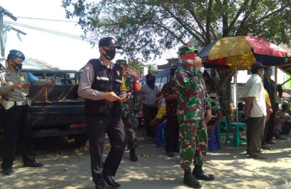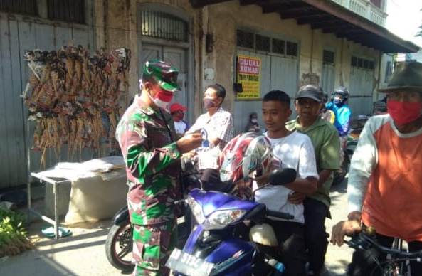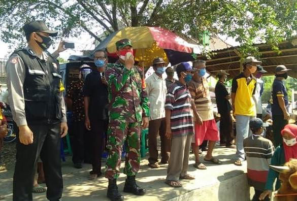 Seperti apa yang dilakukan oleh Pelda Ponidi Babinsa Koramil 10 Mojolaban wilayah desa Bekonang dan beberapa anggota Koramil lainnya tampak bersama dengan anggota Polsek Mojolaban melaksanakan himbauan penegakan protokoler kesehatan, selalu menggunakan masker, jaga jarak guna mencegah penyebaran covid 19 kepada penjual dan pembeli di pasar Bekonang kecamatan Mojolaban. (23/07)