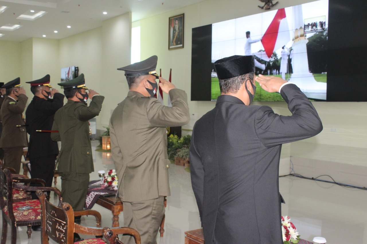 Upacara yang digelar secara virtual serentak diikuti oleh seluruh kepala Daerah di Indonesia, Baik Gubernur, Bupati/wali Kota. Para kepala Dearah yang secara khusus menggunakan pakaian adat daerah masing-masing, Tampak Bupati Sukoharjo, H. Wardoyo Wijaya SH, MH, menggunakan pakaian adat Jawa gaya Surakarta.