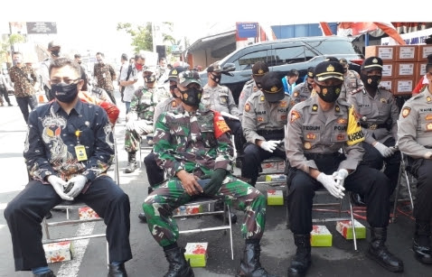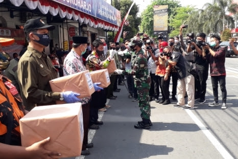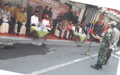 Sukoharjo (10/09/20) Dandim 0726/Sukoharjo Letkol Inf Agus Adhy Darmawan, S.I.P, M.I.Pol menghadiri Deklarasi Protokol Kesehatan Setiap Tahapan Pilkada Kabupaten Sukoharjo yang digelar di halaman Satlantas Sukoharjo kp Larangan Rt 02 Rw 03 kelurahan Gayam Kec.Kab.Sukoharjo, Kamis (10/09).