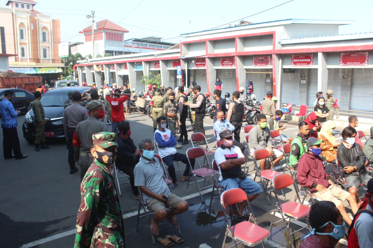 Bagi para pelanggar yang kedapatan melakukan pelanggaran tidak memakai masker dan atau memakai masker tidak sesuai ketentuan ( menutup hidung s/d dagu) langsung dilakukan penindakan dengan sidang ditempat di Terminal Tawangsari dengan sanksi denda Rp.50.000,- dan apabila tidak mau bayar denda dikenakan sanksi sosial membersihkan lingkungan sekitar lokasi.
