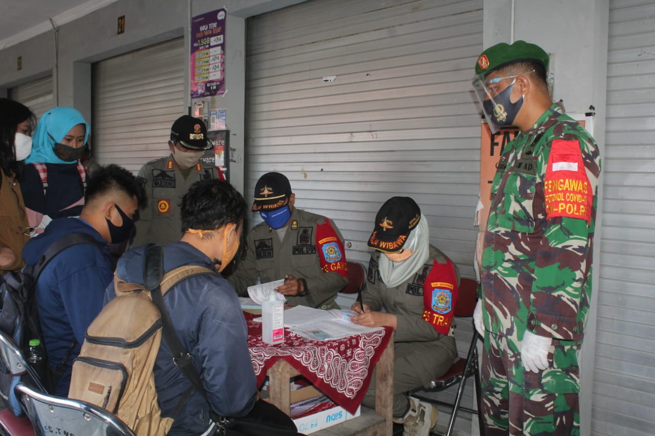 Sukoharjo (18/09/20) Satgas Gabungan yang terdiri atas anggota Kodim 0726/Sukoharjo, Polres Sukoharjo, Satpol PP, Dishub dan Dinas Kesehatan Sukoharjo menggelar razia bersama Operasi Penegakan Disiplin Protokol Kesehatan dalam rangka mencegah penyebaran covid 19 di wilayah Sukoharjo.
