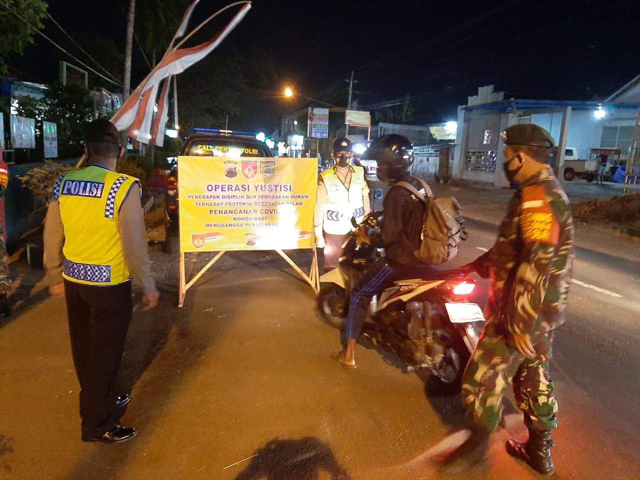 Sasaran operasi Yustisi penegakan Protokol kesehatan covid 19 menyasa kepada para pengendara Roda 2 yang melintas bagi yang tidak menggunakan Masker. Dalam kegiatan tersebut terjaring 12 orang yang tidak menggunakan masker dan memberikan teguran dan peringatan kepada pelanggar protokoler kesehatan sebagai wujud pembinaan agar selalu menerapkan protokoler kesehatan di wilayah Kec. Mojolaban.