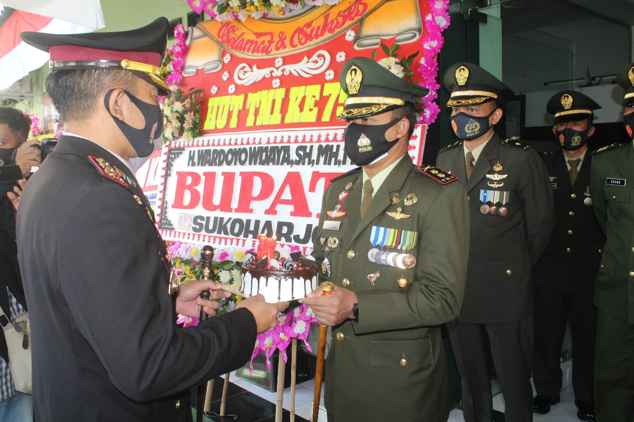 ” Kami dari Kodim 0726/Sukoharjo mengucapkan banyak terima kasih kepada Kapolres dan jajaran Polres Sukoharjo atas atensinya di hari ulang tahun TNI ini, Kami berharap akan tetap selalu bersinergi untuk membackup Polres Sukoharjo demi kelancaran agenda nasional terutama Pilkada dan agenda lainnya demi terciptanya kondusifitas yang aman di wilayah Kab. Sukoharjo”,
