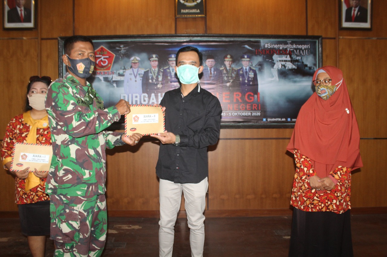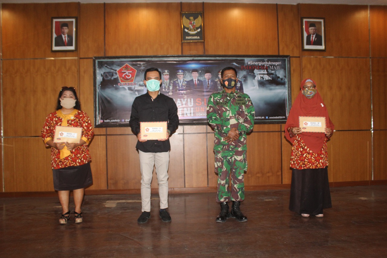 Pemenang Kompetisi Video HUT TNI Ke 75 Kodim 0726/Sukoharjo terima hadiah dari Dandim Sukoharjo
