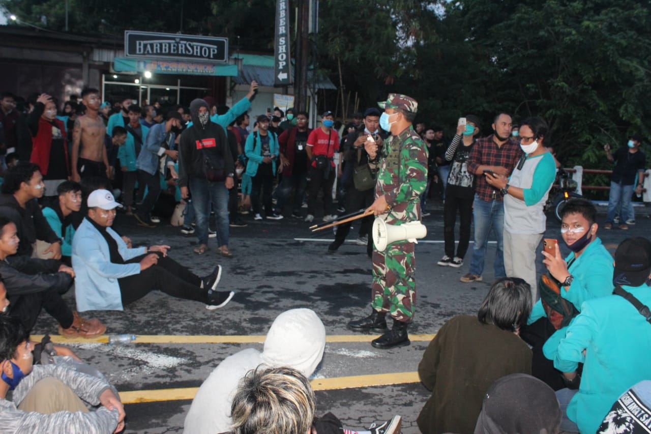 memberikan arahan kepada pengunjuk rasa, Kamis (08/10/20)