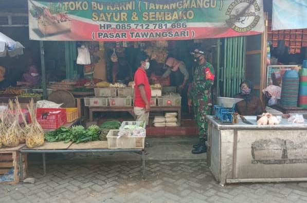 Seperti yang dilakukan oleh Babinsa Koramil 04 Tawangsari, disela-sela tugas Piket tampak Babinsa menyambangi para pedagang di sekitaran Makoramil dan di pasar Tawangsari memberikan himbauan protokol kesehatan. Himbauan ini bersifat mengingatkan warga, agar protokol kesehatan menjadi bagian kehidupan sehari-hari. Ini merupakan upaya yang bisa dilaksanakan Babinsa di wilayah. Sukses dan tidaknya semua tergantung kepada seluruh warga masyarakat untuk menegakkan disiplin protokol kesehatan.