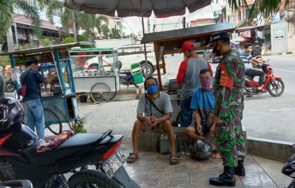 Sukoharjo (18/11/20) Anggota Koramil 04 Tawangsari semakin intensif melaksanakan edukasi, himbauan dan operasi yustisi penegakan protokol kesehatan berkaitan dengan status KLB pandemi covid 19 di wilayah Sukoharjo yang belum berakhir.