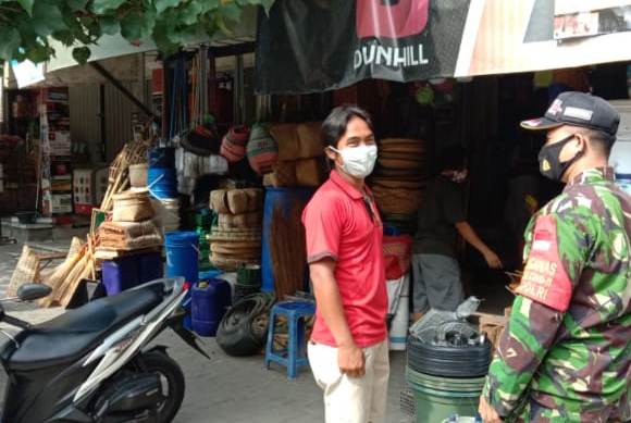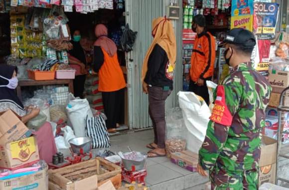 Bapak-bapak TNI tersebut tampak keluar masuk di pasar Tawangsari, menegor, memberikan pengertian dan mengedukasi warga tentang gerakan 3 M, terutama kepada pengunjung pasar yang kedapatan tidak menggunakan masker.
