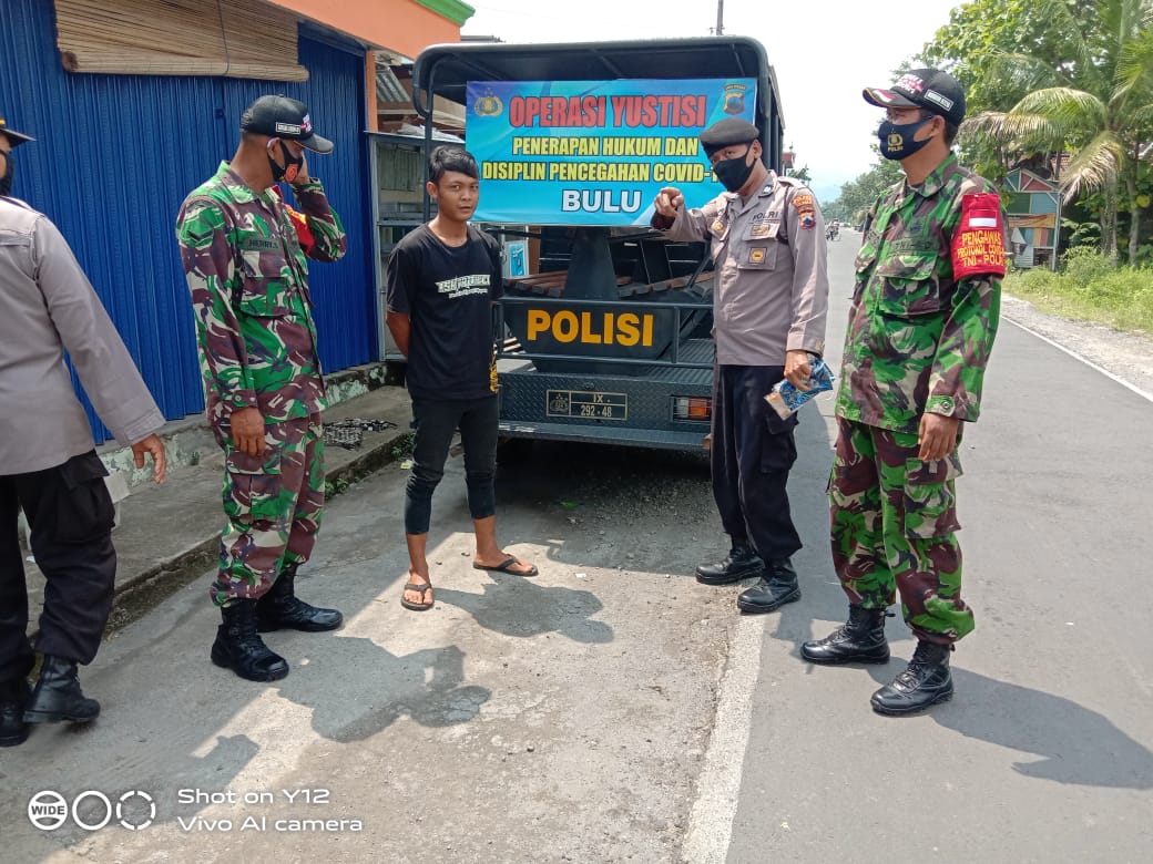Operasi Yustisi melibatkan aparat gabungan dari Koramil 03 Bulu dan Polsek Bulu, tampak sedang menghentikan kendaraan roda 4 maupun para pengendara motor yang kedapatan tidak menggunakan masker, Sabtu (21/11/20).