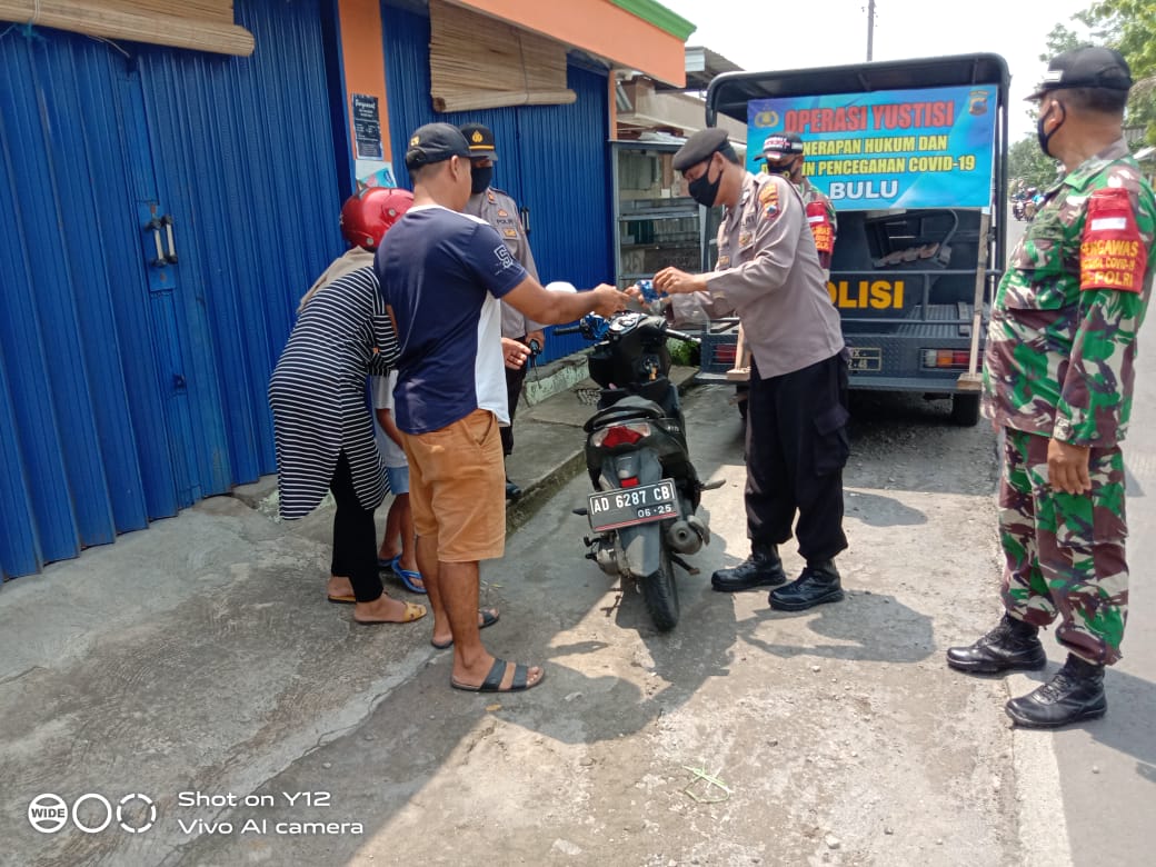 Kegiatan operasi yustisi ini digelar sejak pukul 09.00 wib dipimpin Lettu Inf Wandiman (Danramil 03 Bulu) dan Iptu Dalmadi beserta para anggota. Kegiatan operasi yustisi ini lebih menekankan pada himbauan, edukasi dan pemberian masker gratis bagi yang kedapatan melanggar protokol kesehatan.