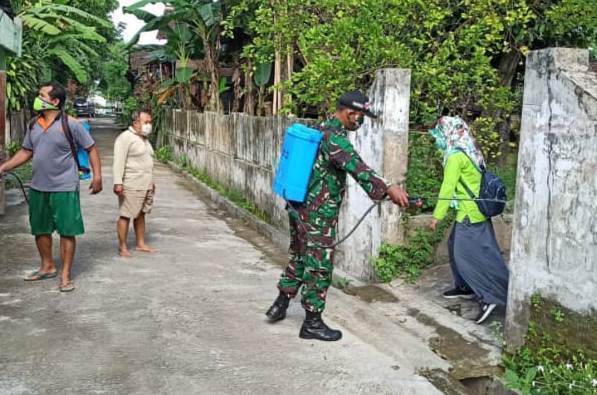 Tampak hari itu Bati Komsos Koramil 08 Baki Pelda Tri Joko membantu melaksanakan mixing bahan-bahan yang diperlukan sebagai disinfektan. Sejak pukul 08.00 wib Pelda Tri Joko telah bergabung dengan warga Bentakan sekaligus melaksanakan edukasi dan himbauan tentang pentingnya melaksanakan protokol kesehatan dengan melaksanakan 3 M, memakai masker, menjaga jarak dan mencuci tangan menggunakan air sabun pada air yang mengalir untuk memutus mata rantai penyebaran covid 19 ditengah warga.