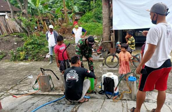 Dinisiasi oleh para RT setempat dengan menggandeng para aparat Babinsa di Koramil 08 Baki, penyemprotan disinfektan ini diharapkan dapat mengurangi penyebaran covid 19 di wilayah desa Bentakan, Baki, Sukoharjo.