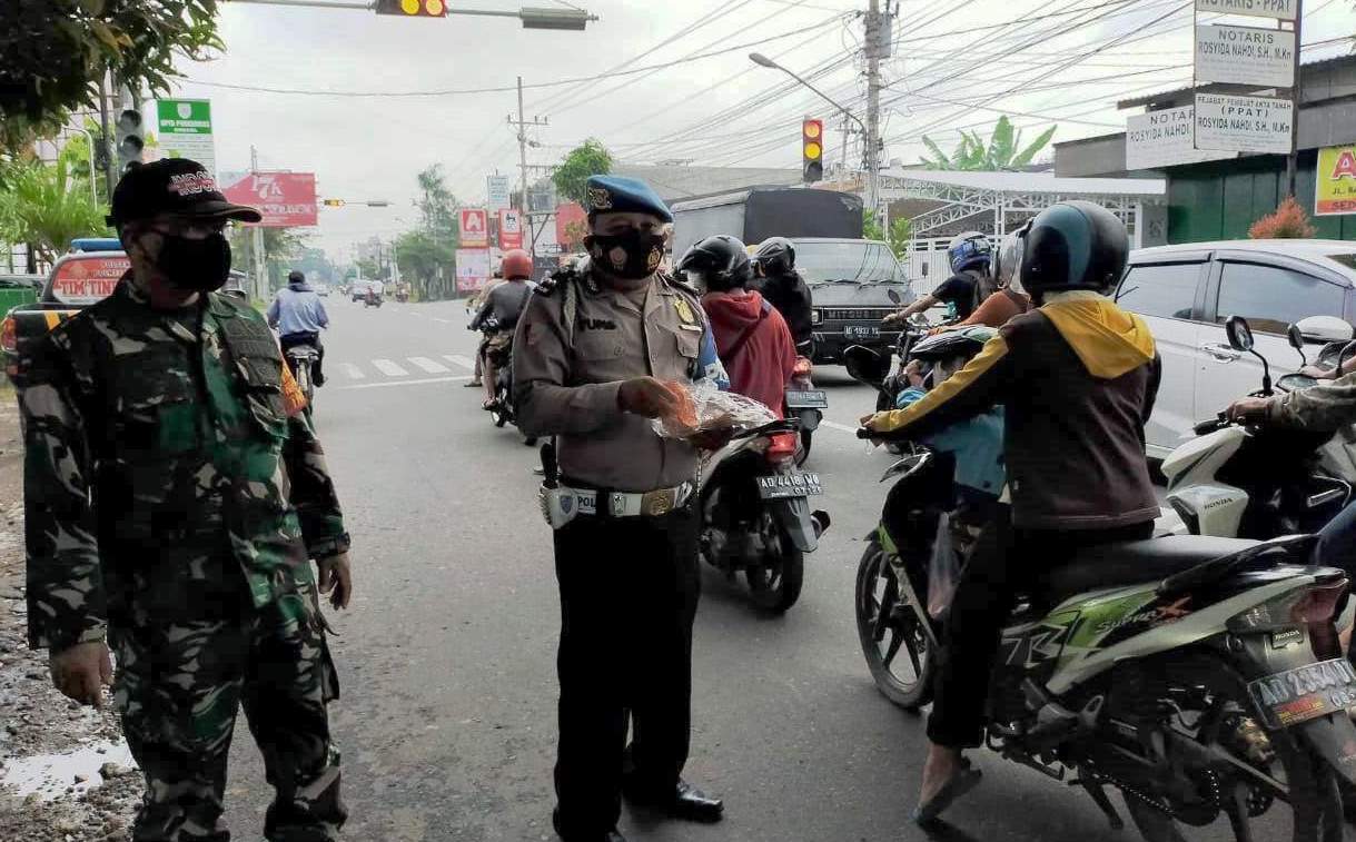 Cegah Covid-19, Koramil 09/Grogol Dan Polsek Grogol Bagikan Masker