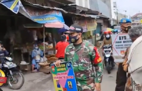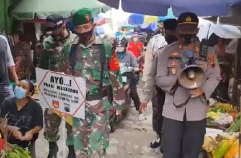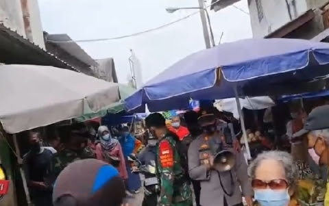 “Pasar merupakan tempat yang sangat riskan terjadinya kerumunan massa, para pedagang dan pembeli bertransaksi, orang dari mana-mana jadi satu di tengah pasar, masyarakat harus kita sadarkan bahaya akibat tidak mematuhi Prokes ditengah situasi seperti ini, kegiatan ekonomi tetap berjalan, namun harus mematuhi protokol kesehatan untuk mencegah cluster baru dari pasar,” tukas Pelda Sudarto.