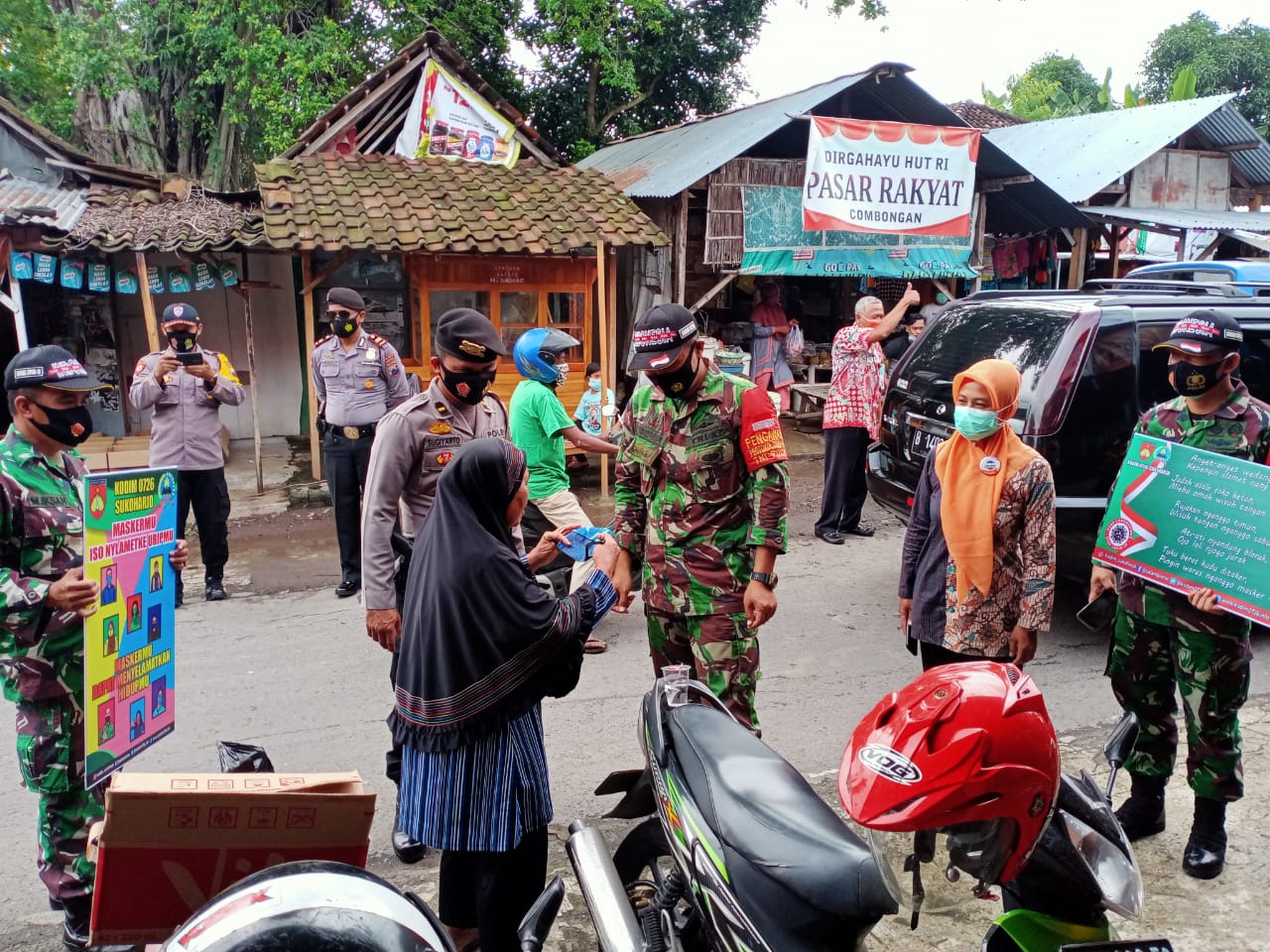 Aparat Gabungan Sukoharjo bagi-bagi masker di pasar Combongan