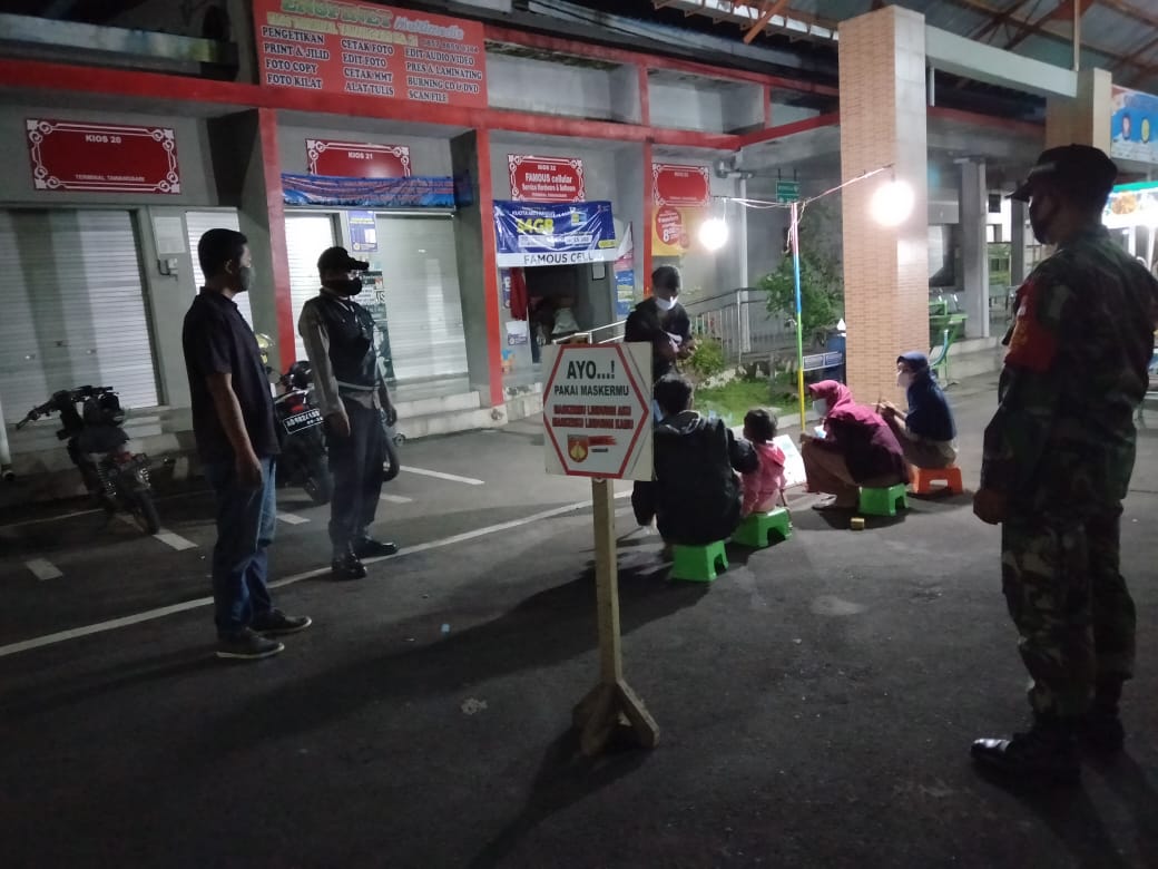 Sukoharjo(20/04/2021)-Patroli malam Koramil 04/Tawangsari bersama Satgas Covid-19 Kec. Tawangsari sasaran kali ini tertuju pada warga yang sedang beraktifitas malam hari di seputaran Pasar Tawangsari. Dalam kegiatan tersebut masih didapati masyarakat yang tidak menggunakan masker di masa Pemberlakuan Pembatasan Kegiatan Masyarakat (PPKM) masyarakat dihimbau untuk membatasi diri dalam melaksanakan aktivitas.