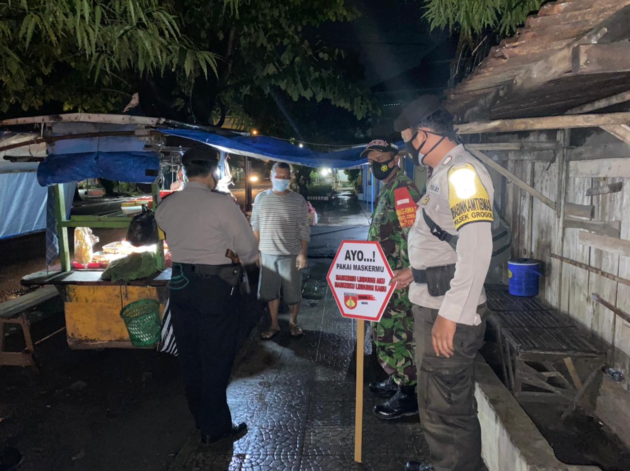 Patroli melibatkan 2 orang anggota Koramil 09 Grogol dan 2 orang anggota Polsek, Himbauan dan edukasi tentang protokol kesehatan kepada warga masyarakat ini menjadi kewajiban yang harus ditunaikan setiap hari, mengingat pandemi covid 19 di wilayah Sukoharjo belum juga berakhir.