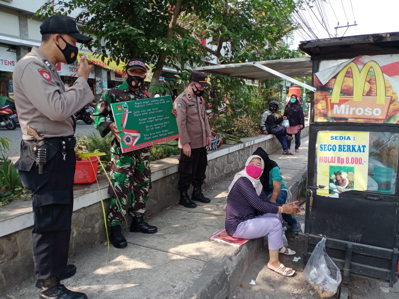 Seperti yang dilakukan oleh Bati Tuud Koramil 02 Nguter Pelda Sukamto, bersama anggota Polsek dan Satpol PP Kecamatan Nguter menyambangi para warga di sekitaran Pasar Jamu Nguter dan sepanjang jalan menuju desa Plesan memberikan himbauan protokol kesehatan.