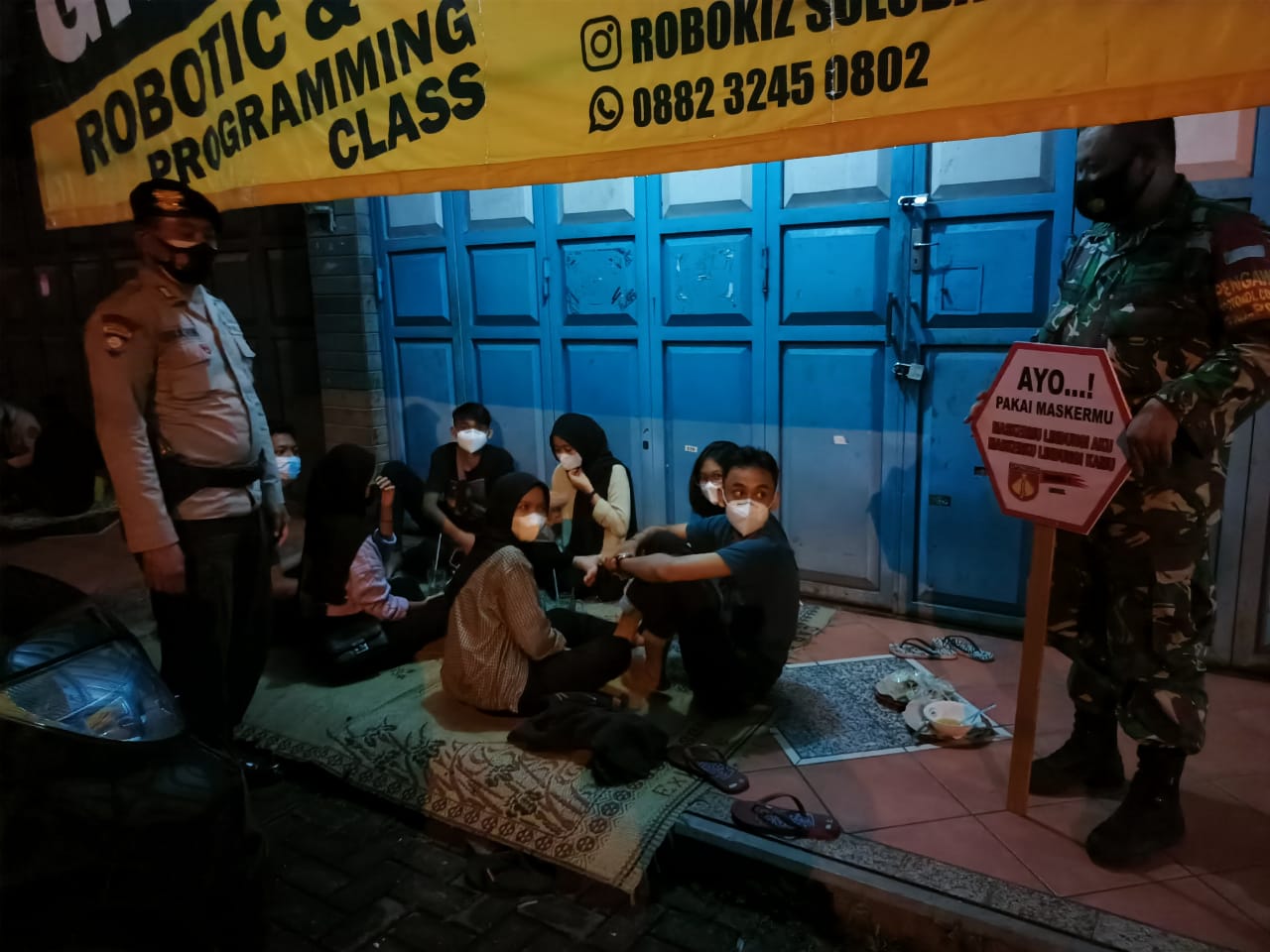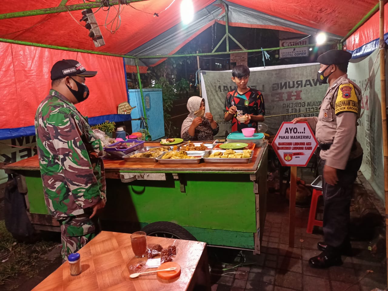 Anggota Koramil 09/Grogol Bersama Polsek Grogol Melaksanakan Patroli dan Himbauan 5M di malam hari Cegah Penyebaran Covid-19
