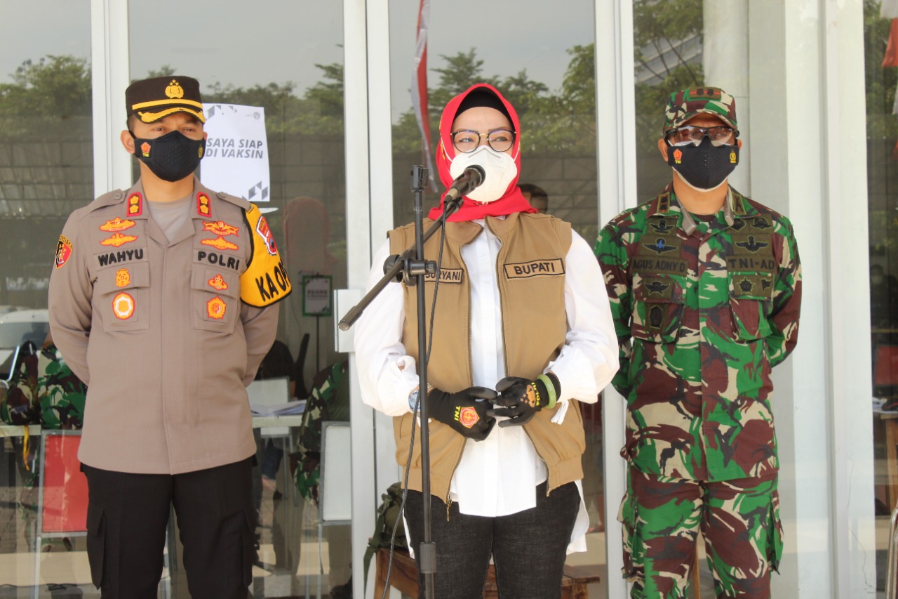 Bupati mengatakan bahwa menghimbau pada masyarakat yang memiliki kesempatan vaksin tidak disia siakan. “Kita terus upayakan vaksinasi kita gandeng TNI Polri semoga realisasi target vaksinasi akan lebih cepat,” ungkap Bupati Sukoharjo Etik Suryani.