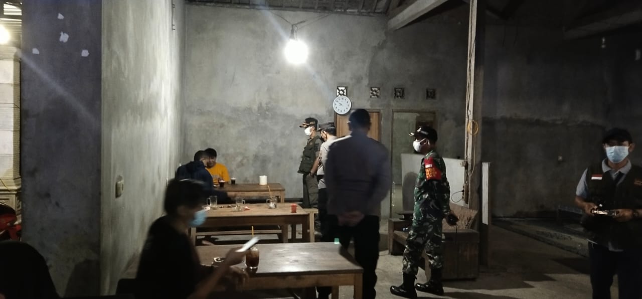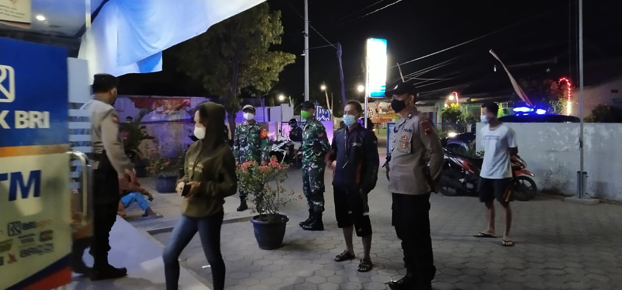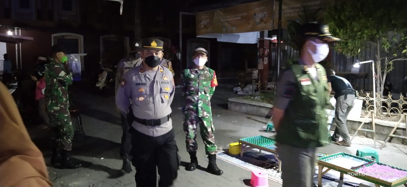 Kegiatan aparat gabungan diantaranya melaksanakan patroli yustisi Prokes, membubarkan kerumunan, menegur warga untuk menghindari kerumunan dan menghimbau jaga jarak, membagi masker kepada warga yang masih saja ada yang tidak menggunakan masker.