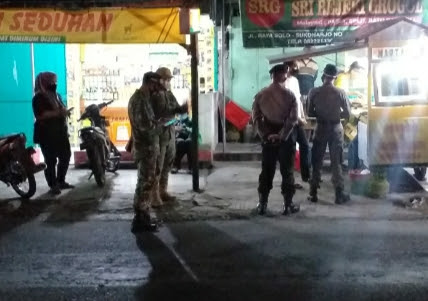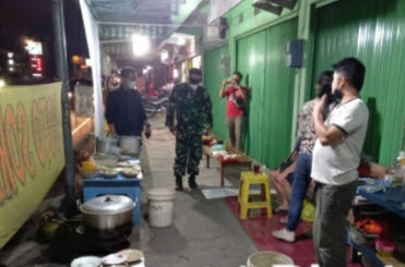 Kegiatan diantaranya menyambangi kerumunan warga untuk membubarkan diri, mencegah terjadinya kerumunan dan mengingatkan para pedagang agar melayani pesan bawa pulang dan mematuhi batas operasional malam hingga pukul 20.00 wib.