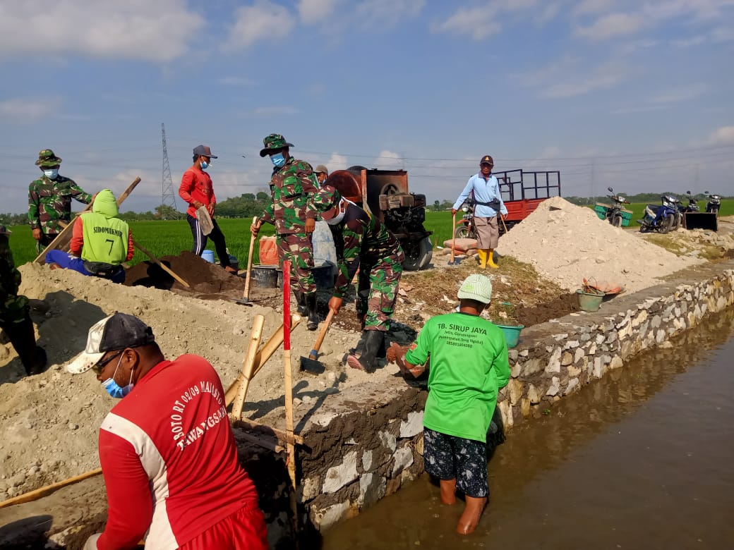 Tampak dalam pekerjaan diantaranya adalah Sertu Juliyanto (Babinsa), Kaur Perencanaan Desa, Pak RW, Psk RT dan beberap tukang dari dukuh Sigobang, desa Majasto bersama warga masyarakat rami-ramai mendukung pekrjaan pembuatan talud ini.