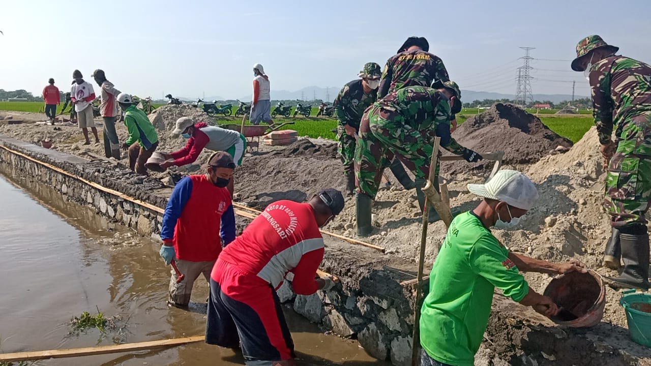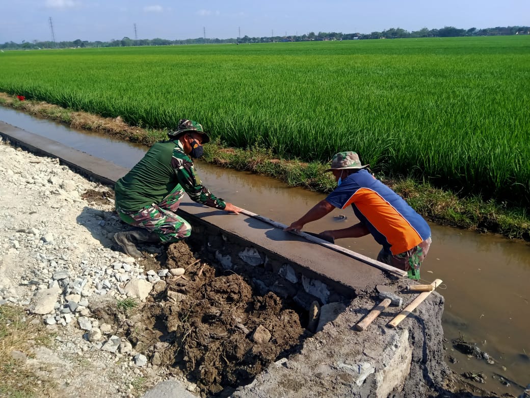 Sementara ini dibeberap titik konstruksi talud yang sudah mengering tampak Warga dan TNI mulai melaksanakan pengisian lepan dan beberap tempat pada lepan yang sudah mengering segera dilaksanakan pengacian. Sasaran talud masih panjang, warga masyarakat dan TNI tetap semangat, semetra pada Pra TMMD ini ploting pekerjaan fisik tetap fokus pada pembuatan talud jalan.