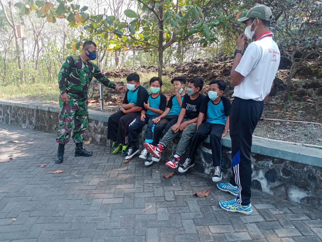 Seperti yang dikerjakan oleh Sertu Joko Nursahid, disela istirahat siang mendatangi siswa-siswi SDN Ponowaren 02 yang sedang melakasanakan kegiatan olah raga. Secara kebetulan lokasi SD 02 Ponowaren dekat dengan Lokasi TMMD di desa Majasto ini. Dalam kesempatan tersebut Sertu Joko memberikan himbauan dan edukasi terkait hal-hal yang berkaitan dengan masa pandemi Covid-19 yang sampai sekarang masih berlanjut.
