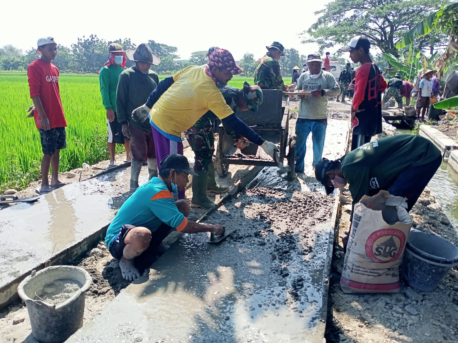 “Partisipasi warga cukup maskimal, kita lihat sendiri ada yang mengkut pasir, melangsir batu dan ada yang turut membantu kegiatan. Semanagat para warga masyarakat terbukti walaupun hujan panas tidak mengurangi semangatnya,” tukas Babinsa Serda Yulianto. Serda Yulianto optimis hingga sebelum berakhirnya TMMD Reguler Ke-112 pada 14 Oktober 2021 pengecoran jalan rabat beton sepanjang 1.000 meter akan selesai dilkerjakan.