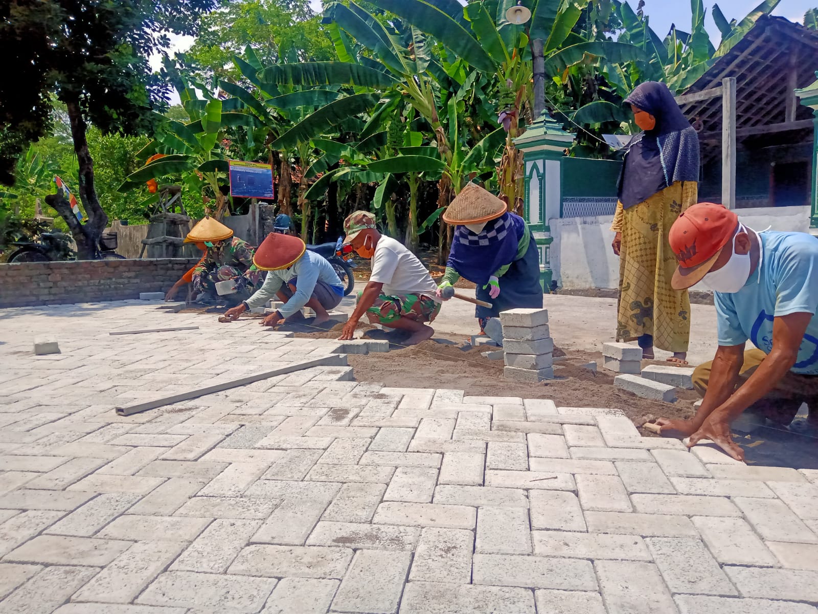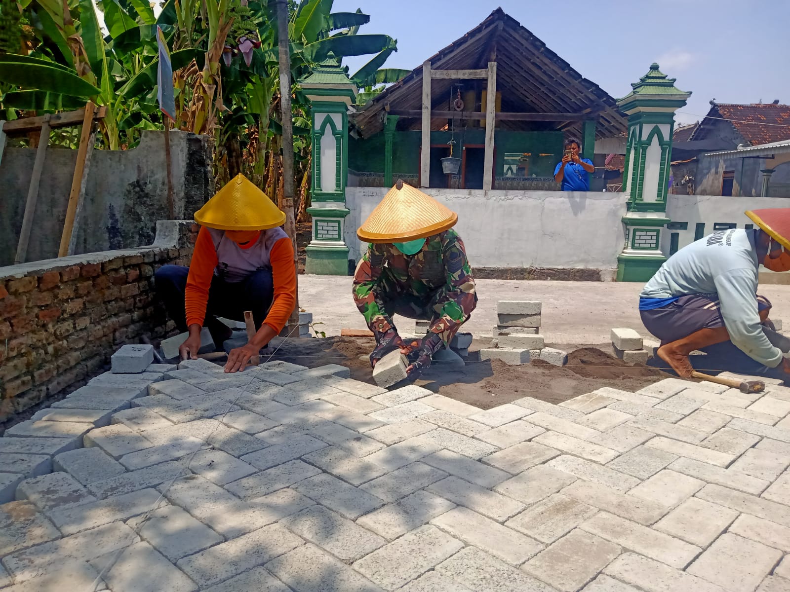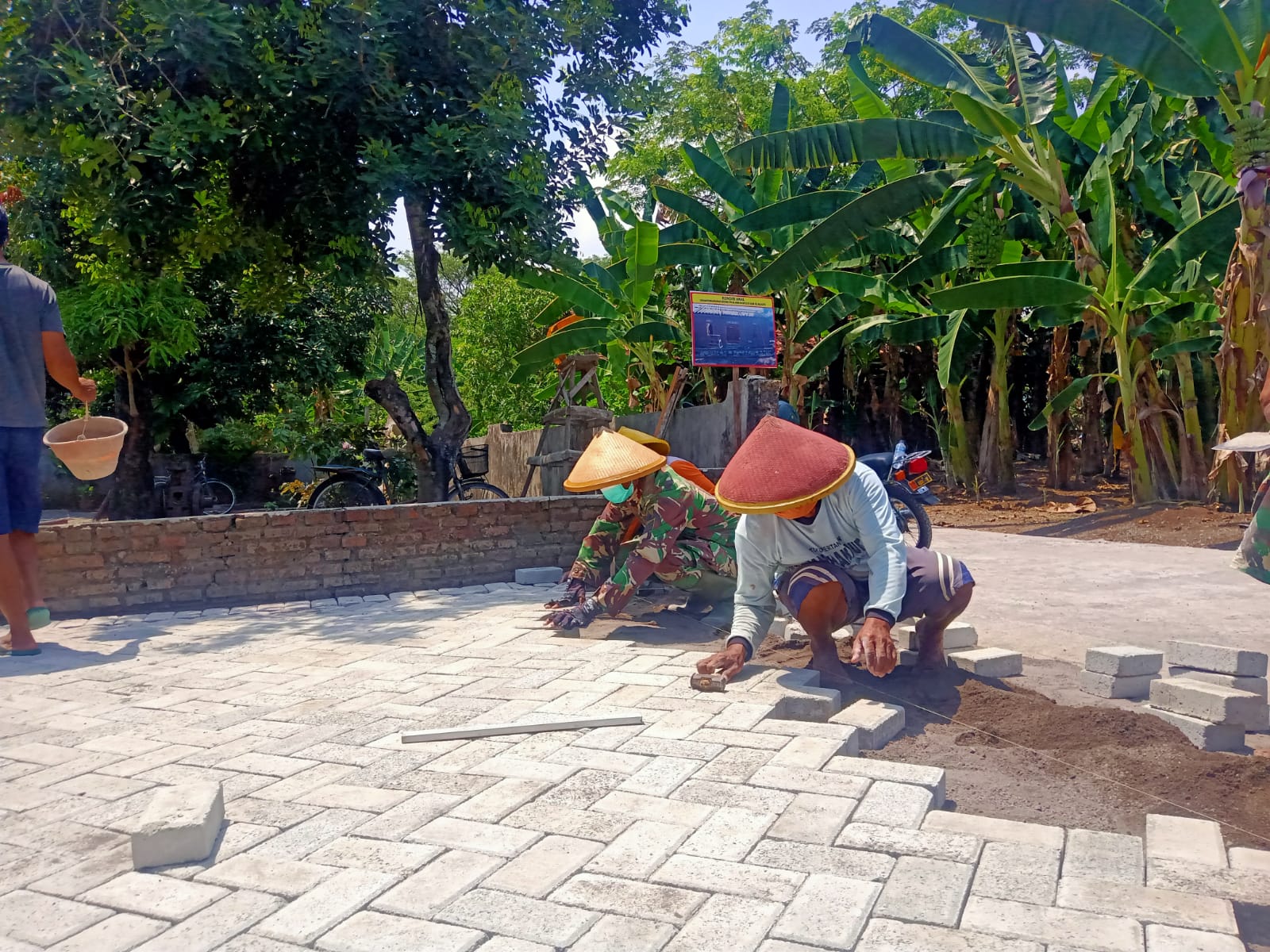 Pemasangan paving blok di Gedung TPA Al-Amin Dk Boto Rt 02/09 Ds. Majasto yang sudah dikerjakan mulai beberap hari yang lalu dan progress pekerjaan sangat cepat karena dikerjakan secara bergotong royong antara anggota Satga TMMD Reg 112 Kodim 0726/Sukoharjo bersama warga masyarakat dukuh Majasto.