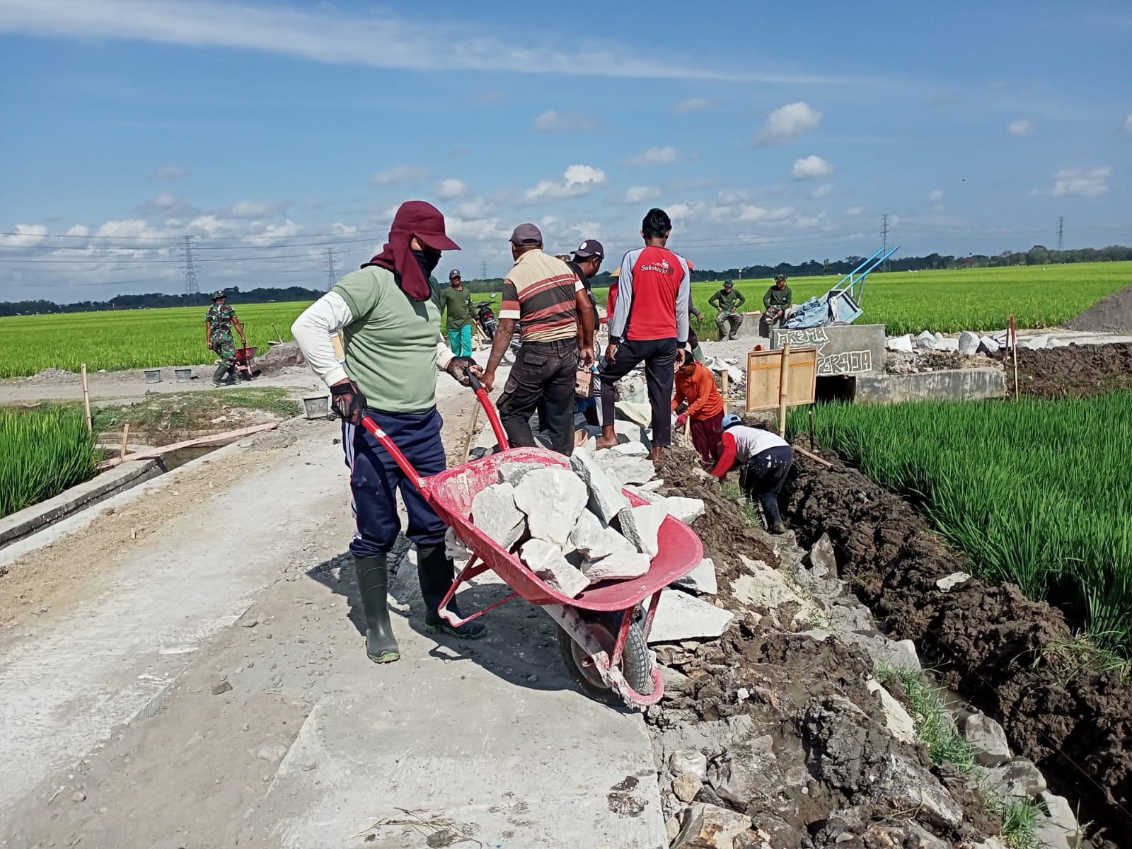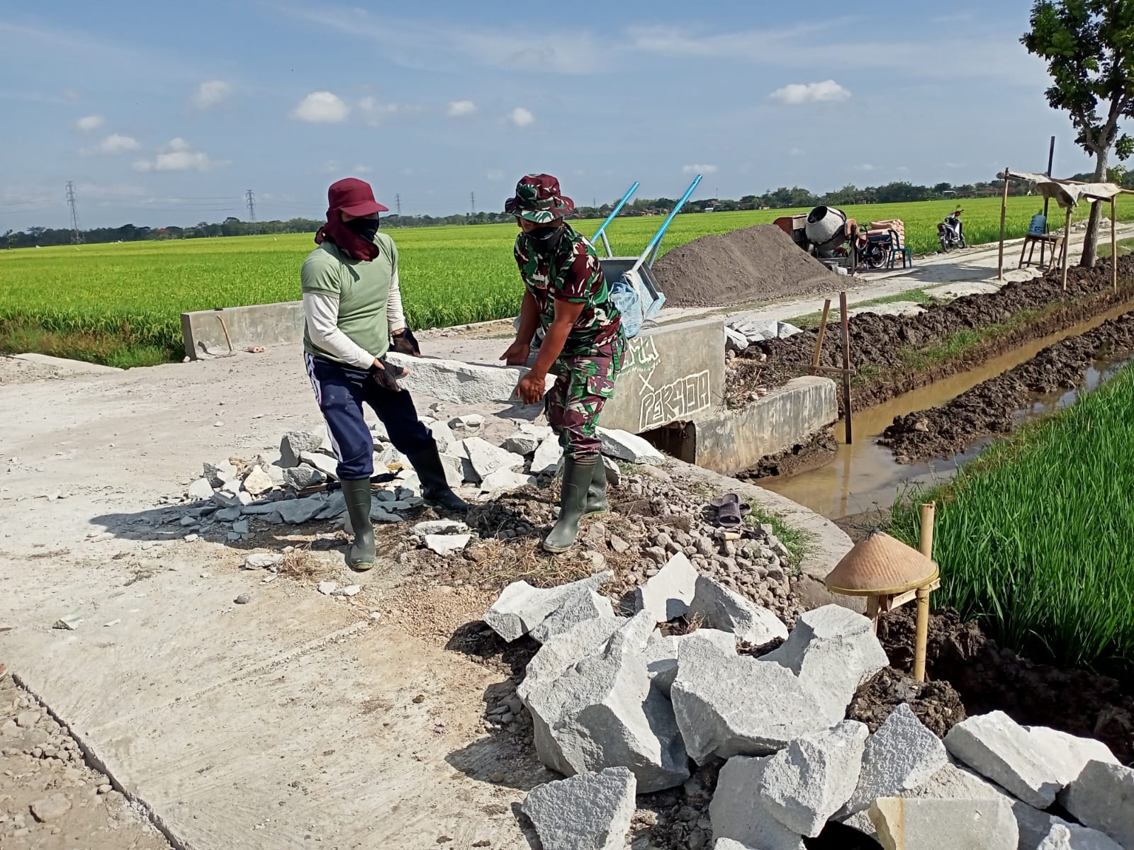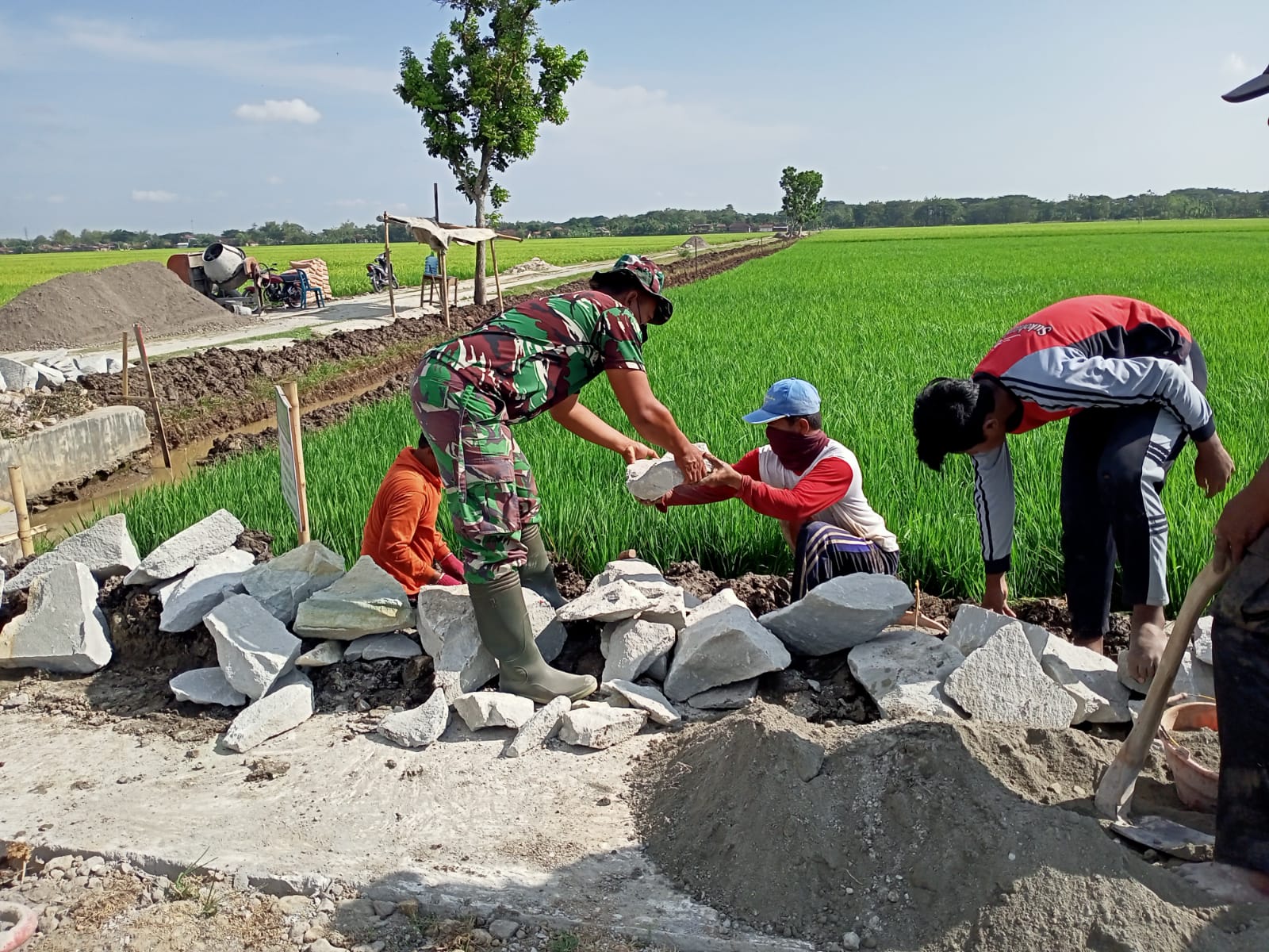 “Droping batu kali, pasir dan semen berjalan lancar, proses penggalian pondasi juga sebagaian sudah rampung sehingga langsung kita kerjakan hari ini, kita mulai dengan pemasangan pondai batu kali, sebagain lagi melaksanakan langsiran baru,” tukas Babinsa Serda Yulianto.
