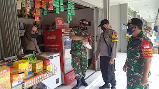 PPKM level 2 Petugas dari Koramil dan Polsek Grogol sambangi pasar himbau warga tetap disiplin Prokes