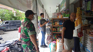 Anggota Koramil 09 Grogol bersama Polsek Grogol dalam hal ini fokus melaksanakan kegiatan patroli dan operasi yustisi penegakan Prokes disertai dengan pembagian masker di sejumlah pasar tradisional diantaranya di pasar Grogol dan pasar Telukan.