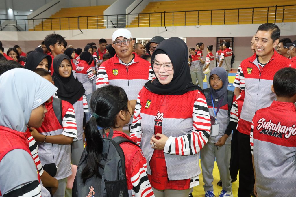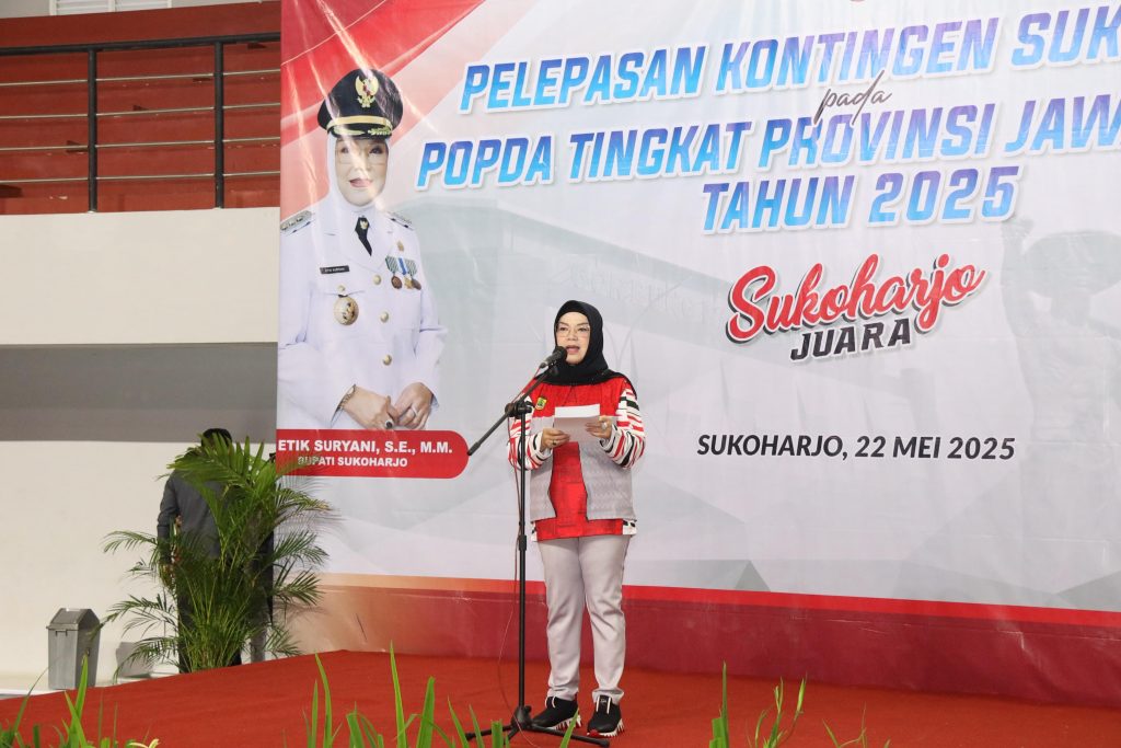 SUKOHARJO – Bupati Sukoharjo, Hj. Etik Suryani, SE, MM melepas kontingen Kabupaten Sukoharjo yang akan berlaga pada Pekan Olahraga Pelajar Daerah (POPDA) tingkat Provinsi Jawa Tengah 2025 di GOR Bung Karno Sukoharjo, pada Rabu (22/05/2025). Kontingen yang terdiri dari 191 orang ini akan mewakili Sukoharjo dalam dua tahap pertandingan di Kota Semarang.