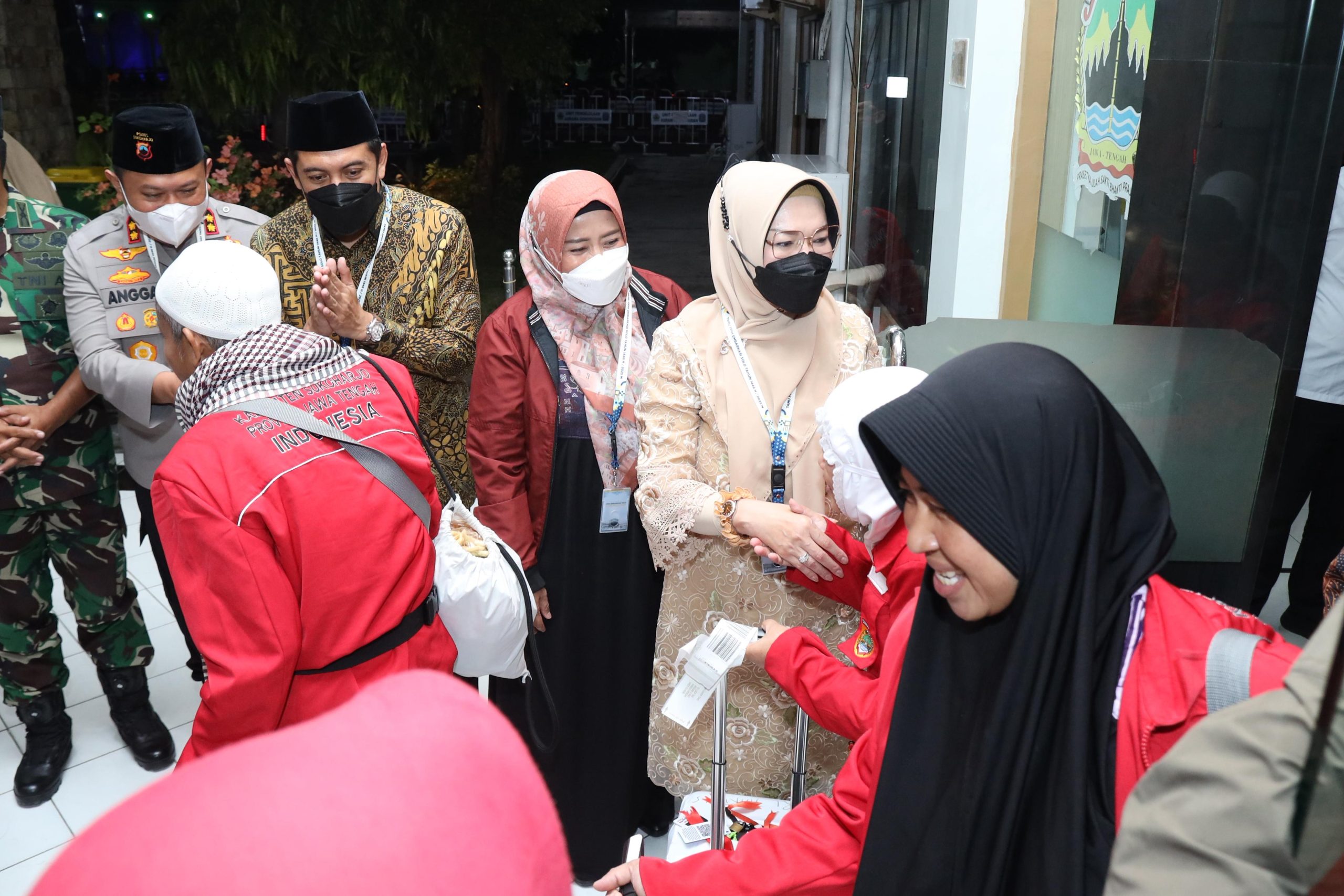 Bupati Sukoharjo @etiksuryani_ad1b Sambut Kedatangan Jemaah Haji Kabupaten Sukoharjo Kloter 73 SOC di Asrama Haji Donohudan Boyolali, Kamis (3/7/2025).