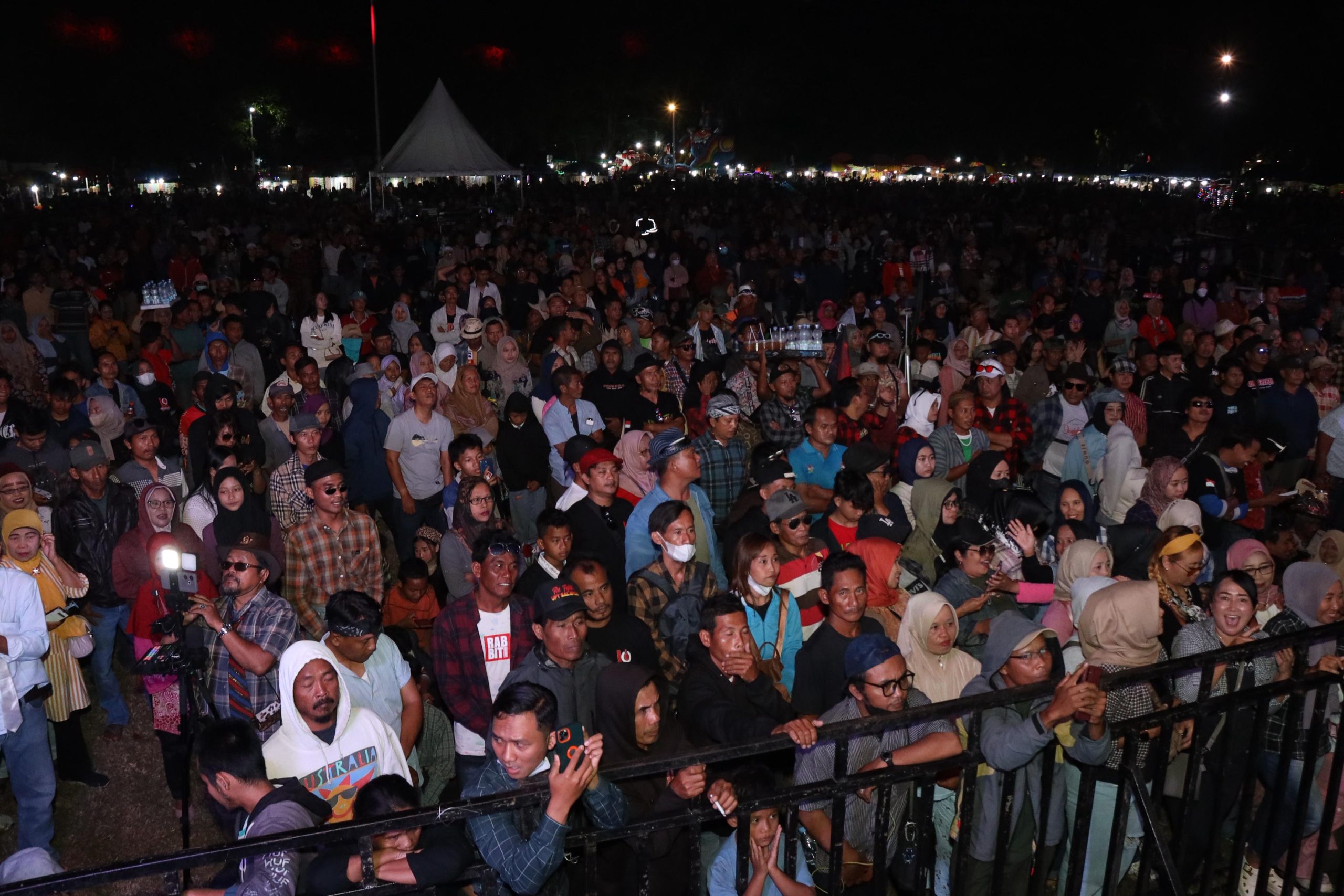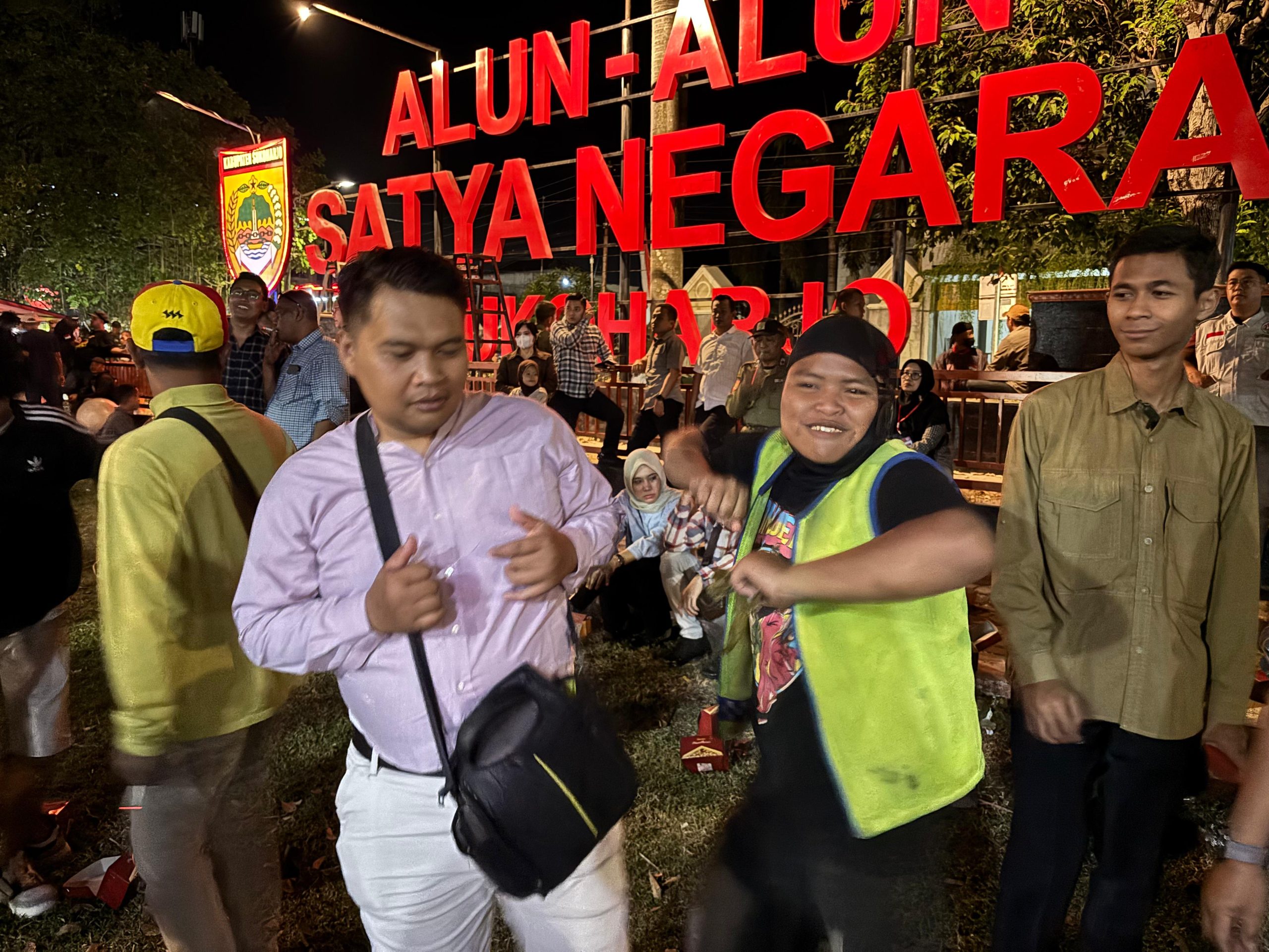 SUKOHARJO – Warga memenuhi Alun-alun Satya Negara Kabupaten Sukoharjo, Kamis (17/7/2025) malam. Malam Resepsi Peringatan Hari Lahir Kabupaten Sukoharjo ke-79 berlangsung meriah dengan kehadiran Orkestra Melayu (OM) Lorenza dan Sasa KDI yang menghibur masyarakat.