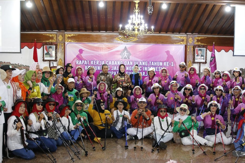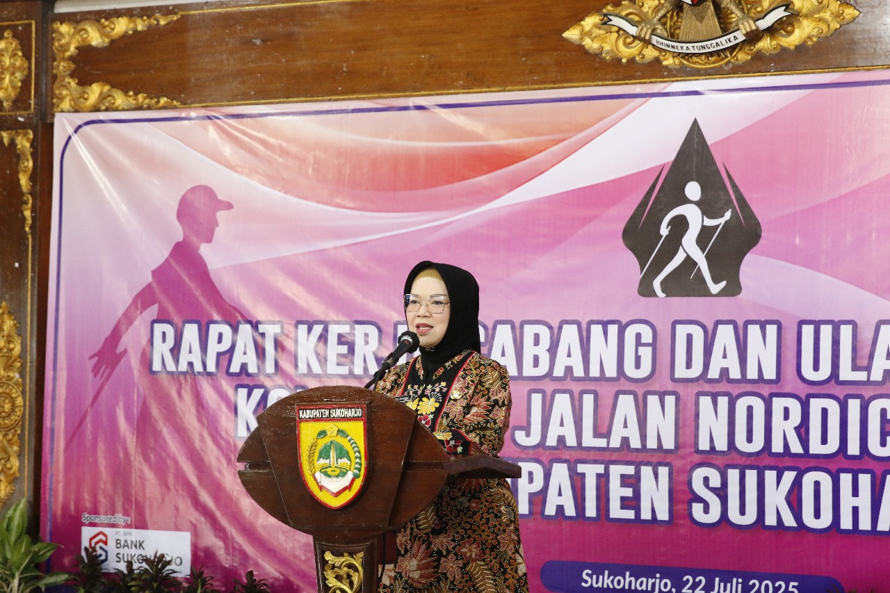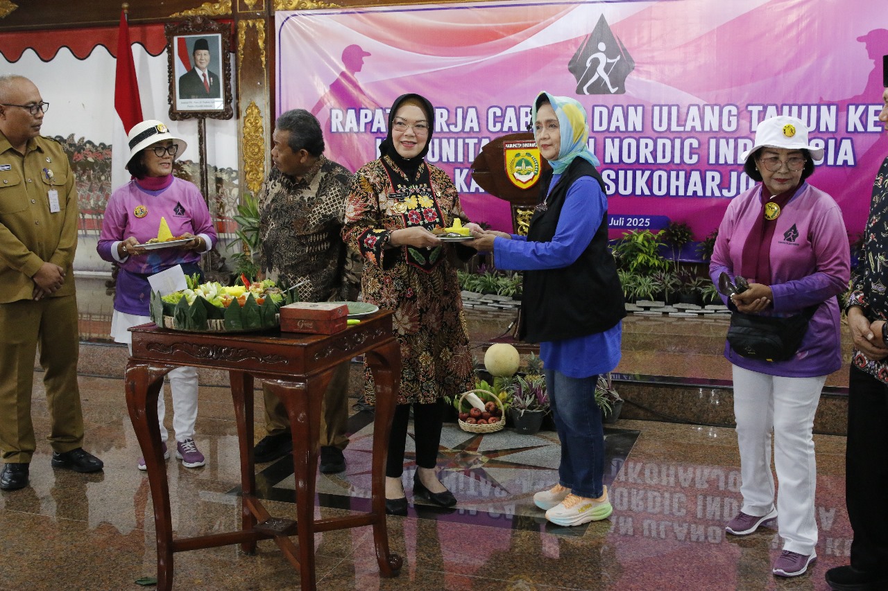 SUKOHARJO – Komunitas Jalan Nordic Indonesia (KJNI) Kabupaten Sukoharjo merayakan Hari Ulang Tahun (HUT) pertamanya yang digelar bersamaan dengan Rapat Kerja Cabang (Rakercab) di Gedung Graha Satya Praja, Selasa (22/7/2025). Acara yang dibuka langsung oleh Bupati Sukoharjo, Hj. Etik Suryani, S.E., M.M., menjadi apresiasi bagi komunitas yang fokus pada olahraga jalan sehat ini.